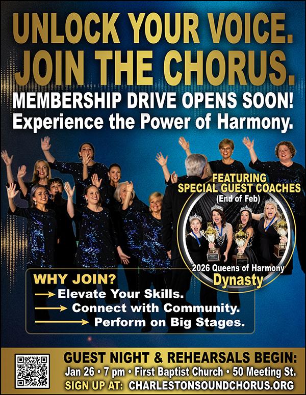 🎶 Sing with Charleston Sound Chorus 6-Week Guest Program | Jan 26 – Mar 9, 2026 What Charleston Sound Chorus invites you to join us for a 6-week Guest Program designed for women who love to sing, want to grow their vocal skills, and are curious about the excitement of barbershop harmony. This special program gives you the opportunity to rehearse alongside our chorus, experience our supportive and energetic culture, and participate in world-class coaching — all while exploring whether chorus membership is right for you. Why This is more than just singing — it’s about growth, connection, and performance. During our Guest Program, you’ll: