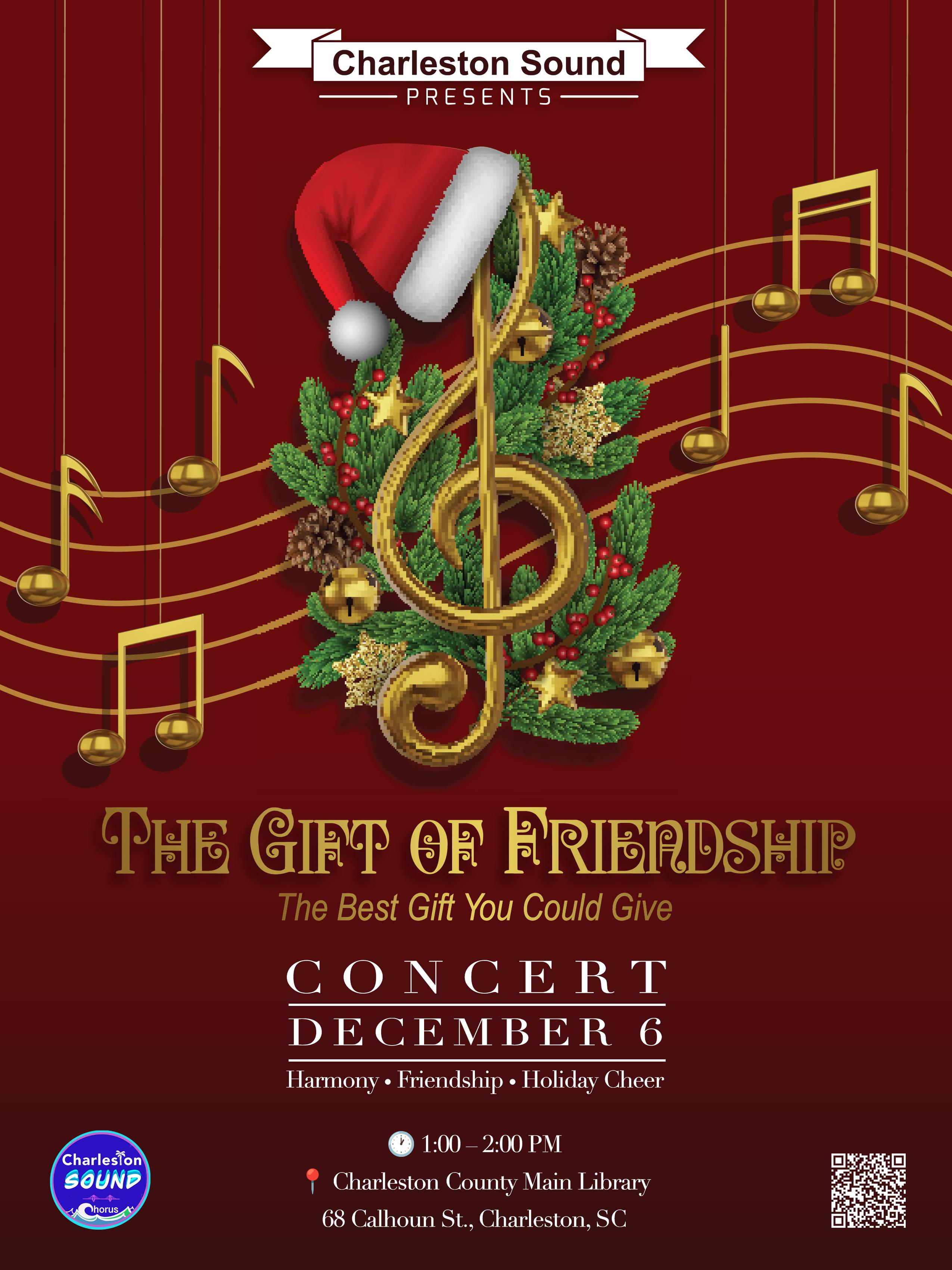 Join Charleston Sound Chorus for a heartwarming holiday concert celebrating the joy of friendship and the spirit of the season.